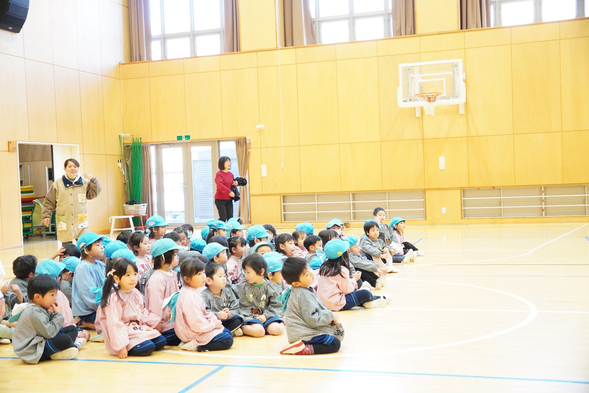 ホールで4年生が歌を3曲披露し、一緒にゲームを楽しみました!